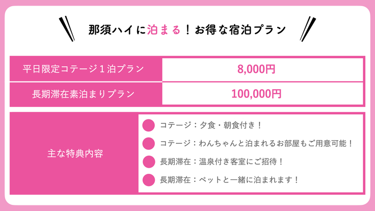 ▶︎那須ハイをもっと堪能!遠方からお越しの方やゆったりと遊びに来てくださる方におすすめ!