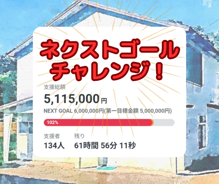 皆様の温かいご支援のお陰で本日、8時15分に目標の500万円に到達することができました🙌🙌🙌