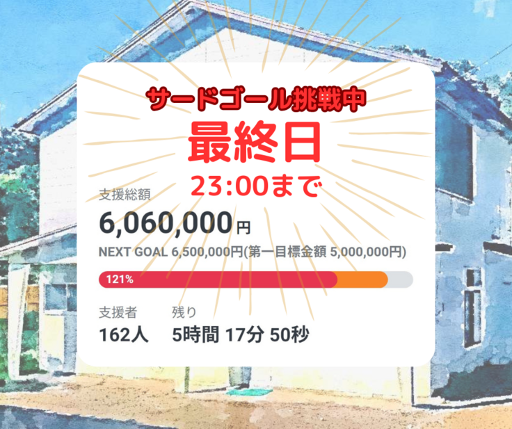 皆様の温かいご支援のお陰で目標の500万円、そしてネクストゴールの600万円も達成することができました🙌🙌🙌