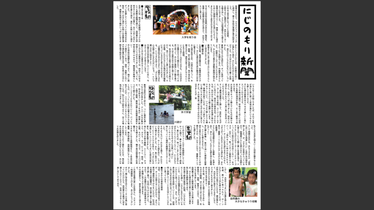 皆さまへの感謝の気持ちを込めて、ただいまの「にじのもり自然学校」の近況を新聞にてお知らせさせていただきます。