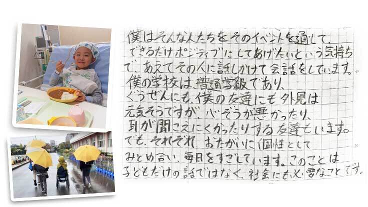 入院当初よりいろんなことに前向きなお子さんで、症状が固定した後も、自立を目指したリハビリをはじめ、スキーやバスケなどさまざまな活動に意欲的に挑戦される姿にはいつも感心させられています。彼にとってまた新たに世界観が拡がるこのイベントを応援しています。