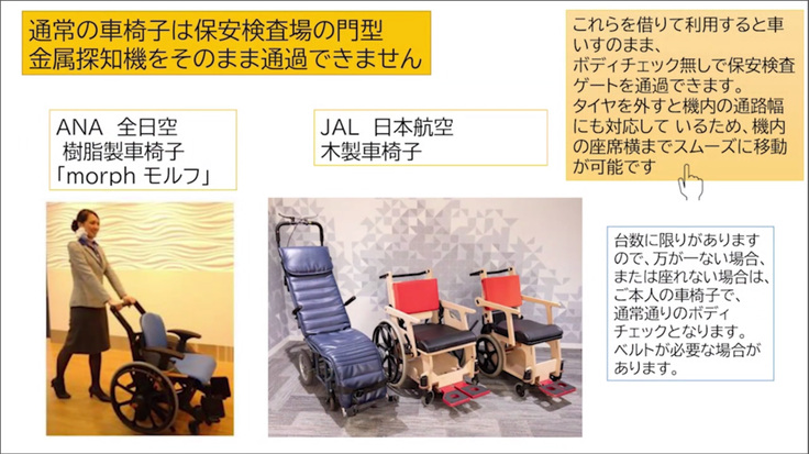 例えば、空港には金属探知機のゲートがありますよね。車いすの方はどうやって通れば良いのでしょうか…?