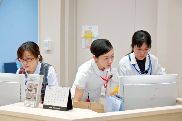 現在、交代制スタッフを含めて約40人のスタッフが一日7時間(平日受付時間9:00〜16:00 (相談支援センターは10:00-16:00)/ 土日祝は休診日)患者さんの対応を行っております。