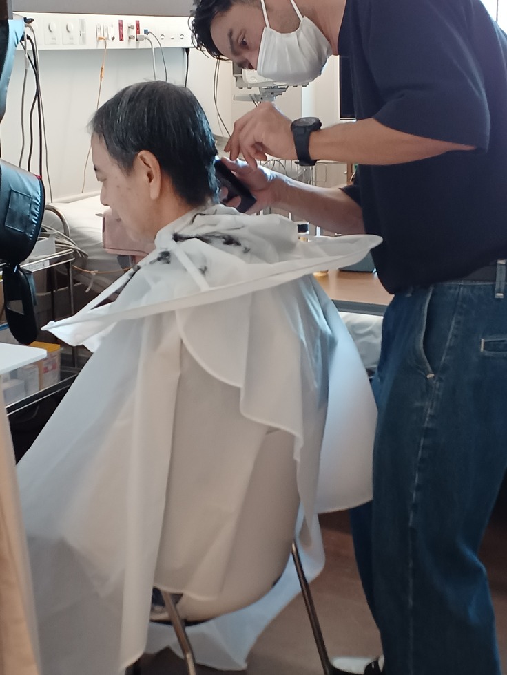 月~年単位での入院生活を必要とする患者さんは専門の美容師・理容師に整髪していただくのも容易ではありません。カット後は皆さんさっぱりされていました!