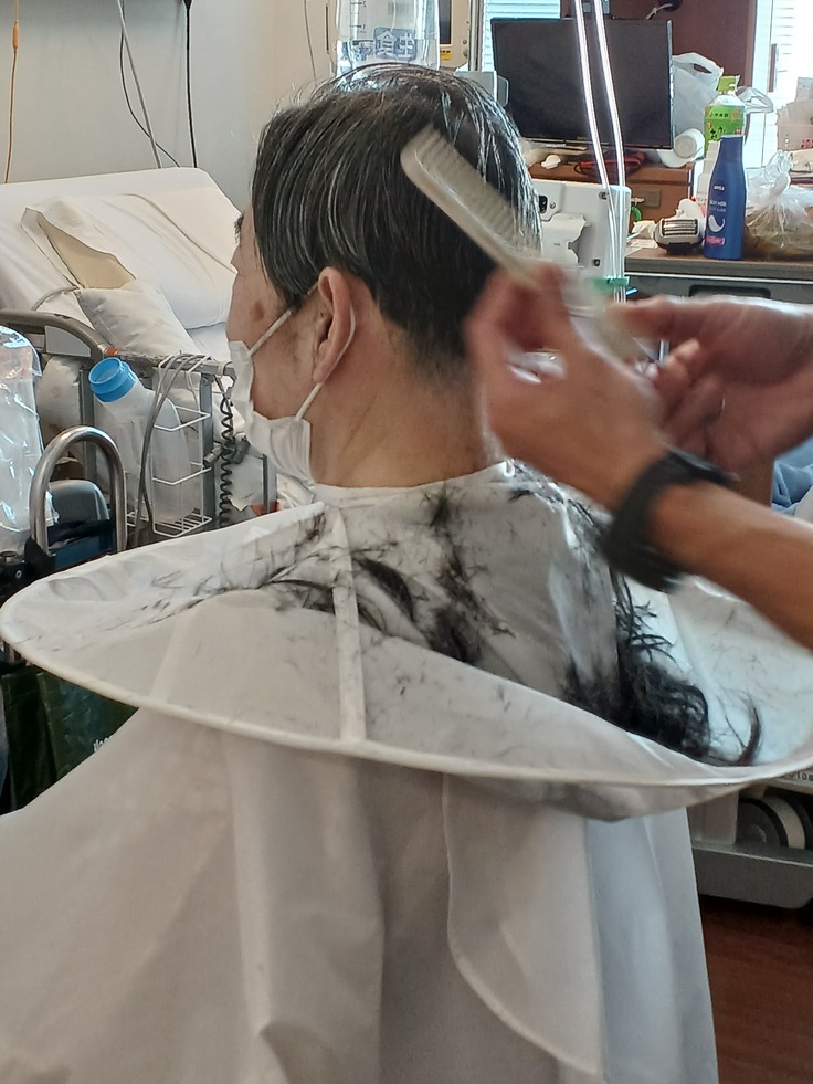 先日、北摂を中心に訪問美容をされている美容師さんに病棟までお越しいただき、長期入院中の7名の患者さんのヘアカットをしていただきました。