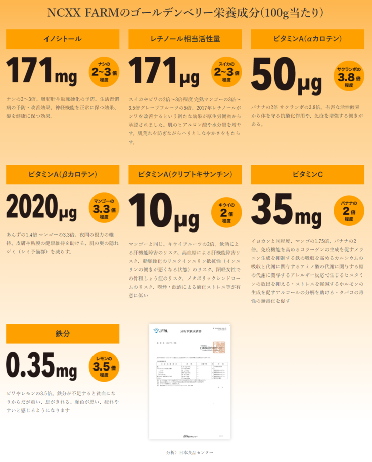ネクスファームのゴールデンベリーはこんなに栄養満点です。