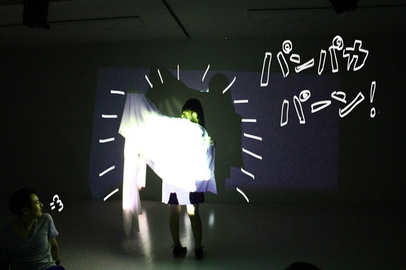 光ってしまって分かりづらいかもしれませんが…これ、人型の中にだけ映像が投影されています!