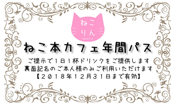 ①ねこ本カフェ年間パス(1日1杯無料券)、オリジナルポストカード、お礼状