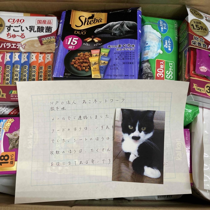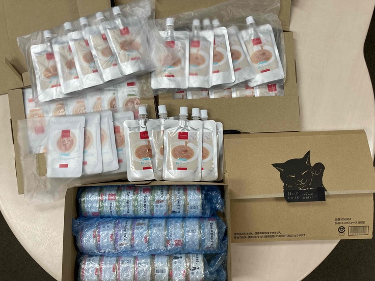 地域猫を保護して家族に迎えた方からは、病気で食べられなくなってしまったフードをいただきました。
