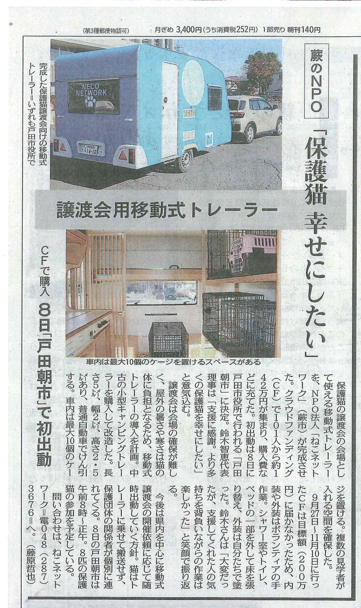 今朝の東京新聞 埼玉版でも大きな記事にしていただけました。