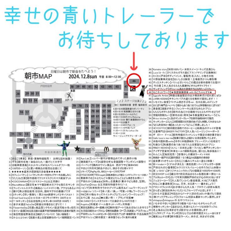 混み合った場合はお待ちいただく可能性がありますので、暖かい服装でお越しくださいませ。