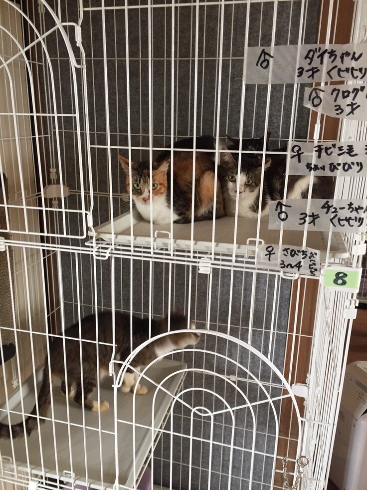 しかしシニア猫は活動的で元気いっぱいの若い猫の中で過ごし、白血病キャリアの猫はケージの中で過ごしている状況です。