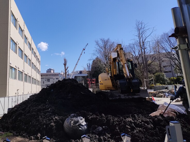 現在は以下のような状態で、池に何十年と堆積し底なし沼状態だった泥を掻き出し、撤去しているところです。この泥が想定以上の量と、そして池の中からガラ(レンガやコンクリードブロックなど)が出てきたりして、それらの撤去に手こずっているところです。