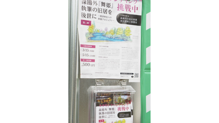 つつじ苑内や境内各所で、ポスターやチラシを設置し、第二弾クラウドファンディングのご支援を呼びかけております。