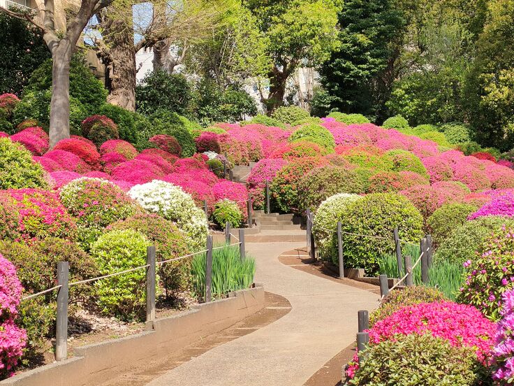 根津神社では4月30日(火)まで、つつじまつりを開催しております。例年より冷え込んだ関係で、昨年より開花が遅れておりましたが、ようやく早咲きのつつじがきれいになってきました。