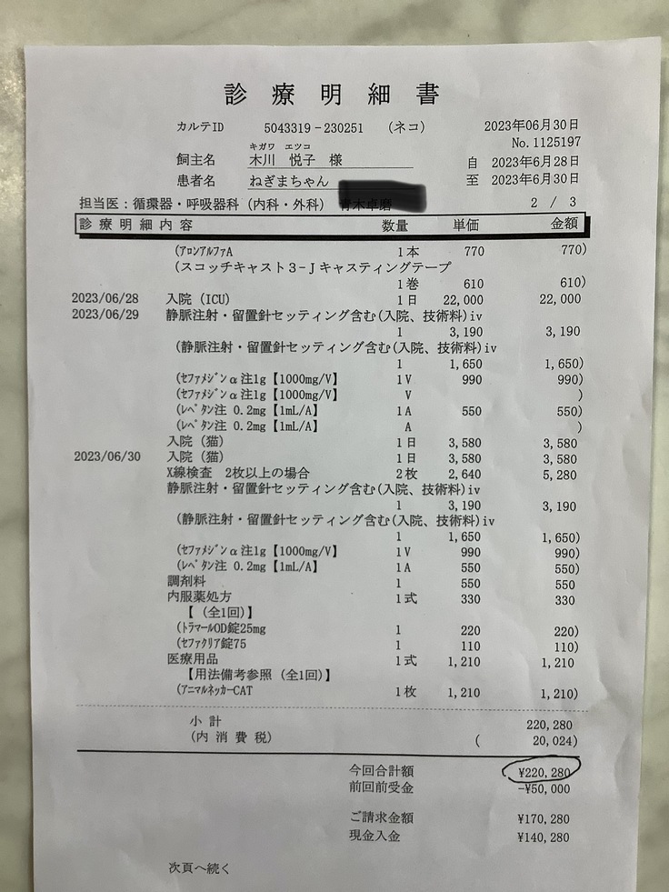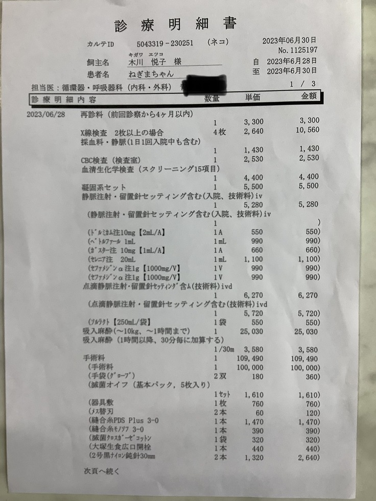掲載している診断書や診療明細書などの資料は全て動物病院から掲載の許諾を得ております。