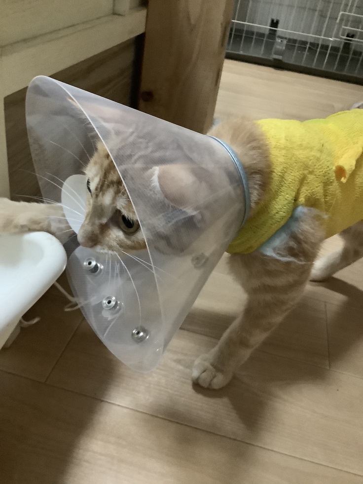 術後のエリザベスカラーのねぎま(=^x^=)です