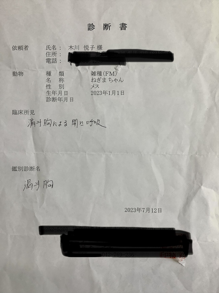 最近保護した子猫の呼吸に異変があり、保護猫も診察している病院に行った所、漏斗胸と診断されました。そちらの病院では手術は出来ず大学動物病院を紹介されました。