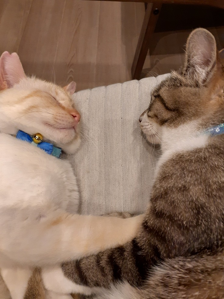 右の保護猫は左の保護猫と河川敷で暮らしていました。保護時は肝臓の数値が同じくふれていました。現在も投薬を続けてます。