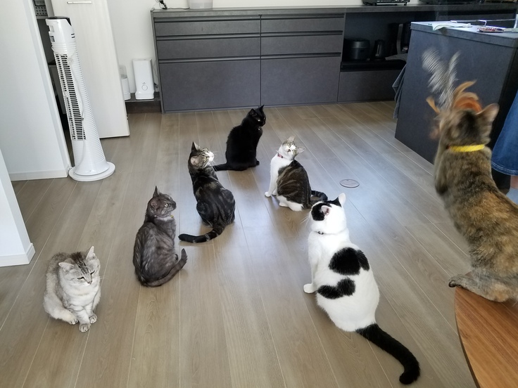 現在の飼養頭数ですがハンデや高齢、疾患のため譲渡先が見つからずリタイア猫として飼養しているのは11匹、保護して1年未満の譲渡対象としている保護猫は6匹、現在拾得物として委託保管している保護猫1匹。計17匹をお世話しています。