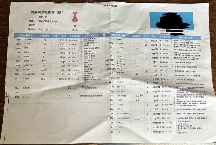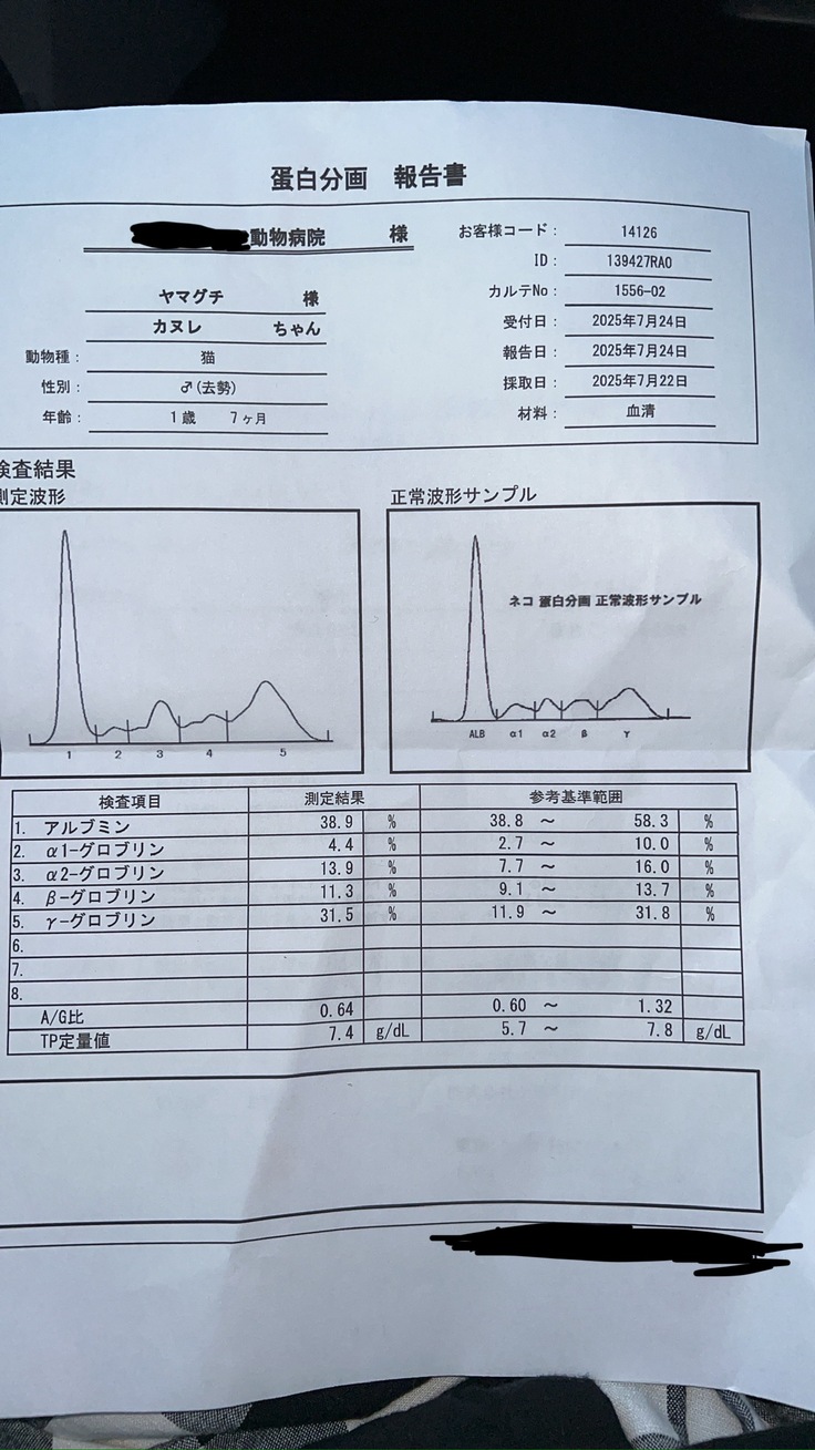 白血病は陰性、エイズは疑陽性。FIP検査結果待ちに。