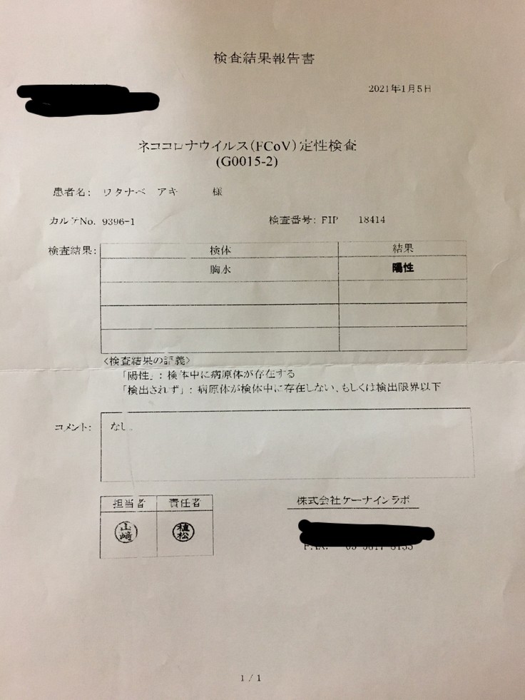 12月29日にナツの兄弟アキのFIP発症がわかってから、