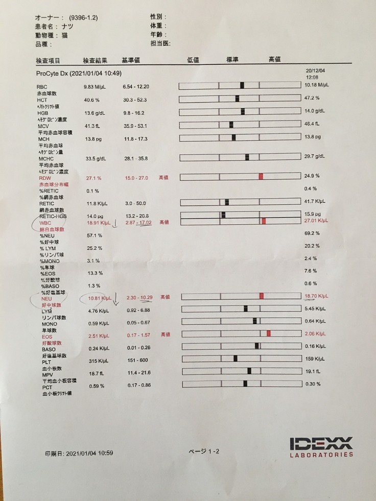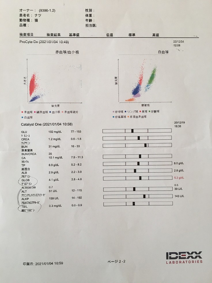 二週間に1度、血液検査をし、ナツは状態が良くなれば、