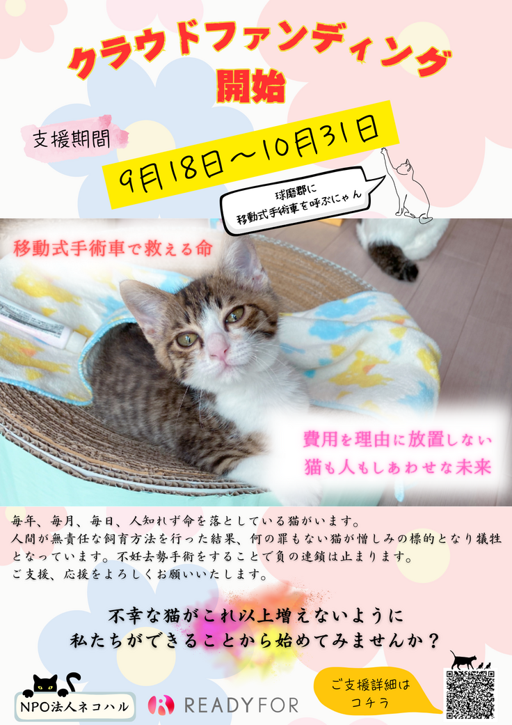TNR関して関心も理解の乏しい地方では、信頼性も必要と考え、ネコハルは9月にNPO法人ネコハルとして再スタートをいたしました。