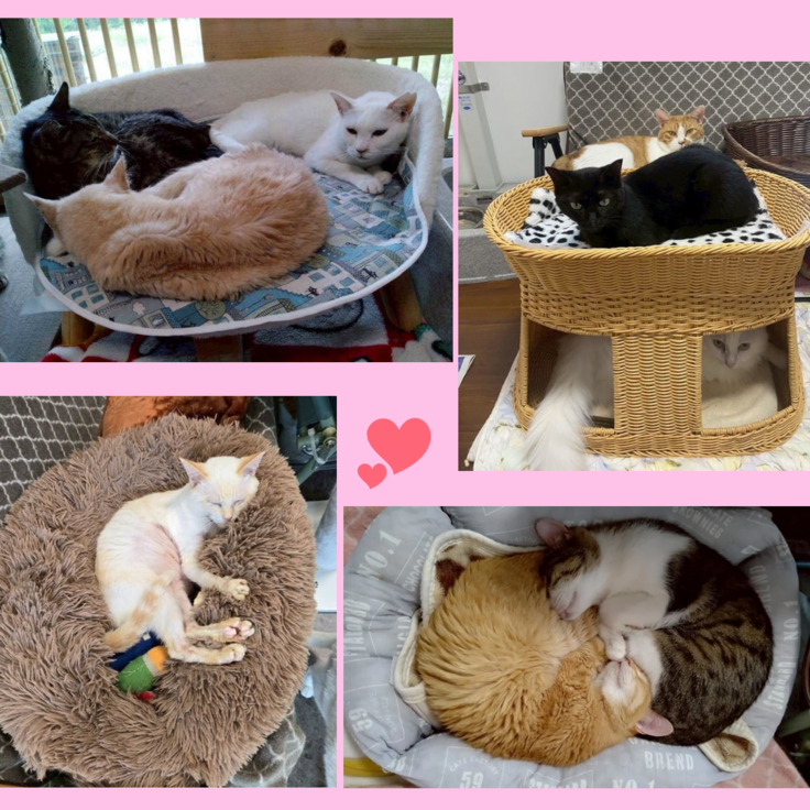 そして、皆さまからご寄付いただいたふかふかのベッドやちぐらで、猫たちが丸くなって気持ちよさそうに眠っている姿は、私たちスタッフにとって何よりの喜びです。この穏やかな光景こそ、皆さまの温かいサポートの賜物です。
