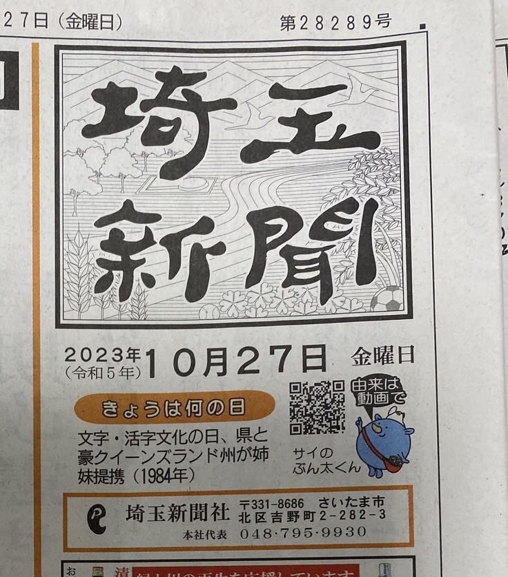 本日(10月27日)の埼玉新聞に掲載いただきました!