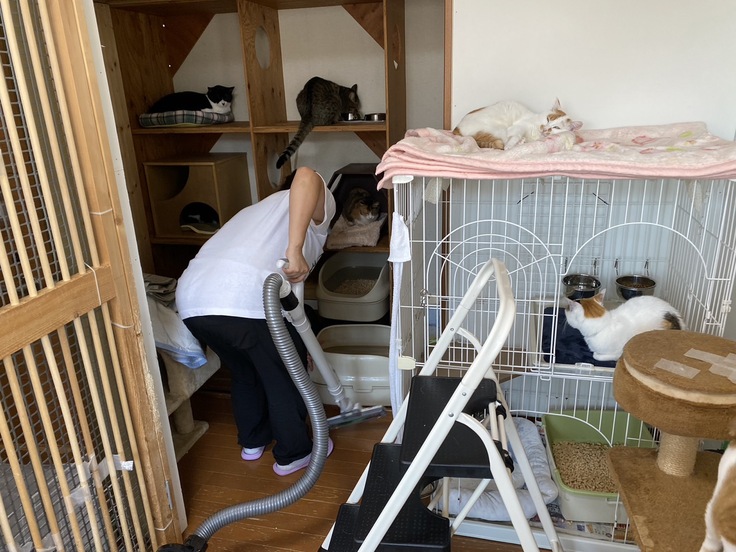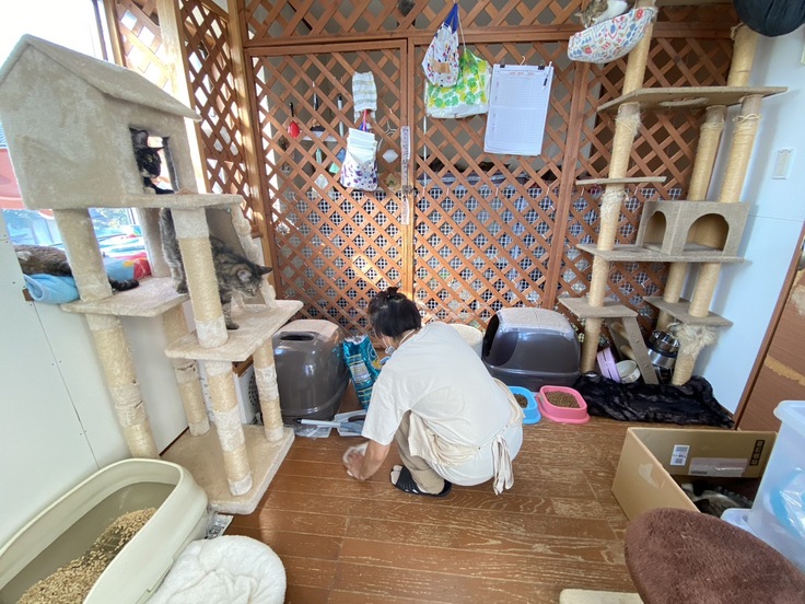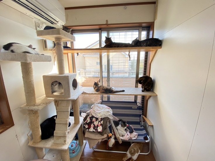 部屋ごとに管理しており、全てのお部屋で保護猫保護犬たちが過ごしています。