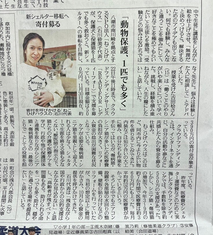 東武よみうり新聞さんにて、ねこひげハウスのクラウドファンディング挑戦の記事を掲載していただきました!