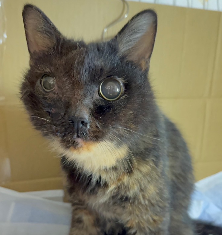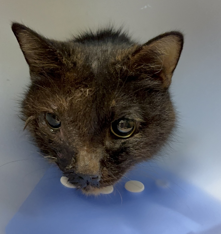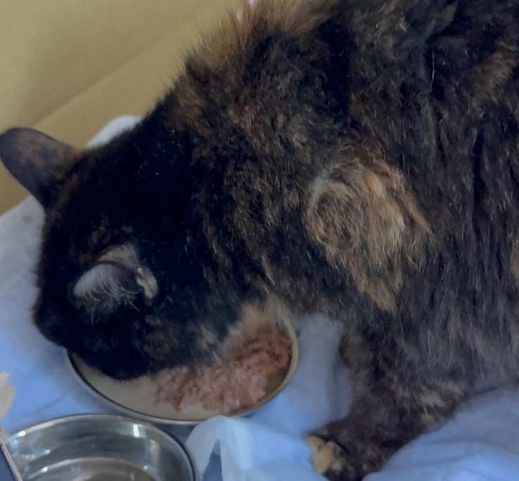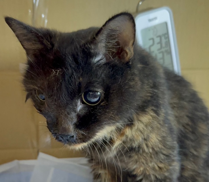 昨日、緊急で、もん子ちゃんと名付けた シニアと思われるがん疾患の疑いのあるサビ猫さんを保護しました。