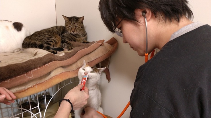 保護猫をたくさん見ている先生なのでさすが! タイミングを逃しません。