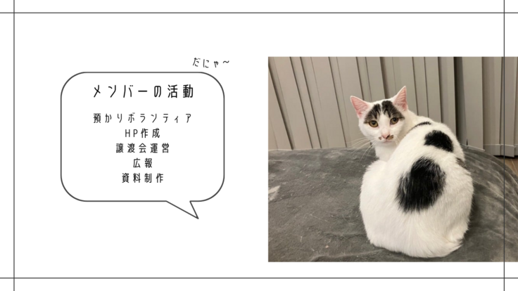 「ボランティア」とは無償のボランティア・有償ボランティアと2種類に分かれますが「ねこ活」の「ボランティア」は完全なる無償のボランティアで、代表含め全て活動メンバーも無償ボランティアで構成しております。