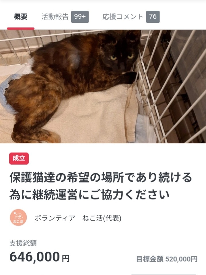 猫を救う為の策をねこ活に教えていただけることも応援になります。