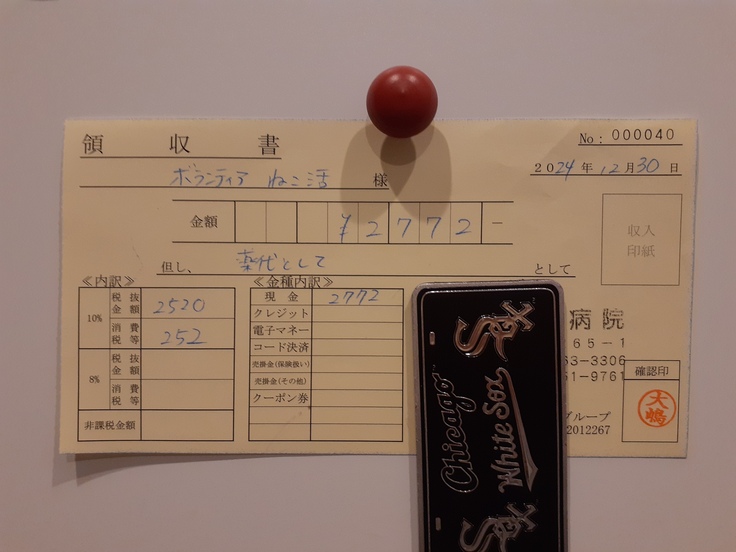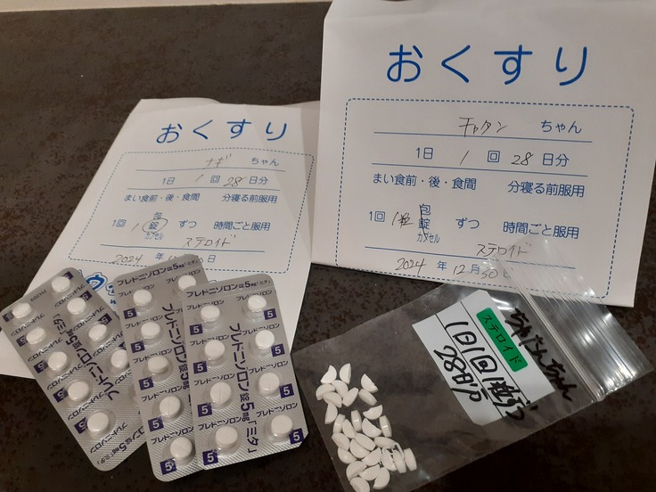 そして【ちゃたん君】は目の上の肥満細胞腫の緩和のためのステロイド毎日半量【凪君】は腸疾患緩和のステロイド毎日1錠の投薬を継続の為処方いただきました。