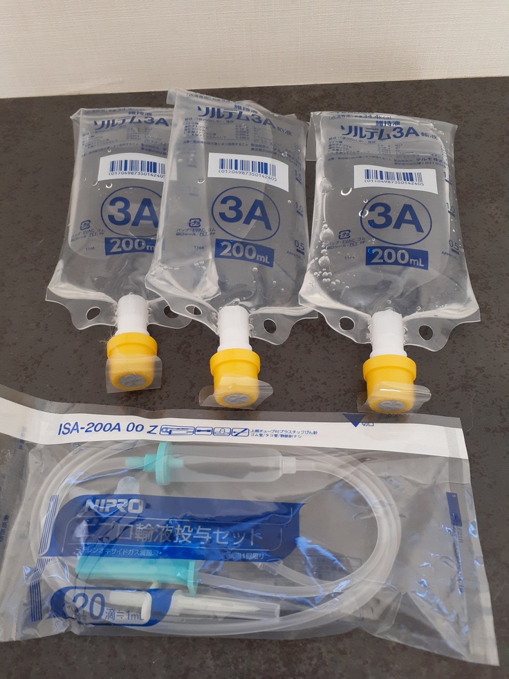 いただくのを忘れ、自分の飼い猫の輸液を使ってましたのでこちら代わりにいただいてきてます。