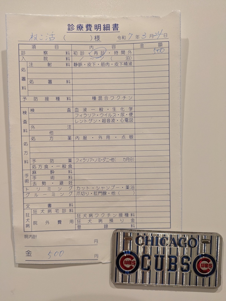 もうかさぶたになっていたので処置はなく、掻かないようにとネック+カラーをして出発しました。
