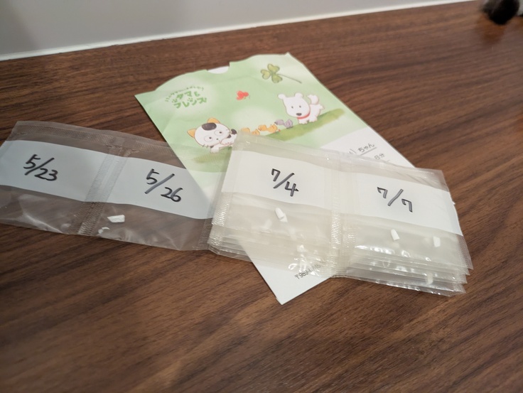 前回いただいた飲み薬の抗生剤も効いたことも要因ではありますが今回はまた元に戻って3日に1回で口内炎に効く抗生剤に変更になりました。