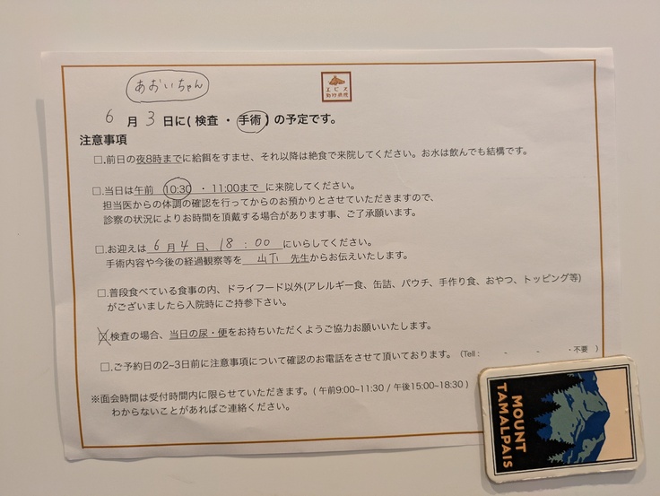 手術は10日、こちらも一泊二日です。