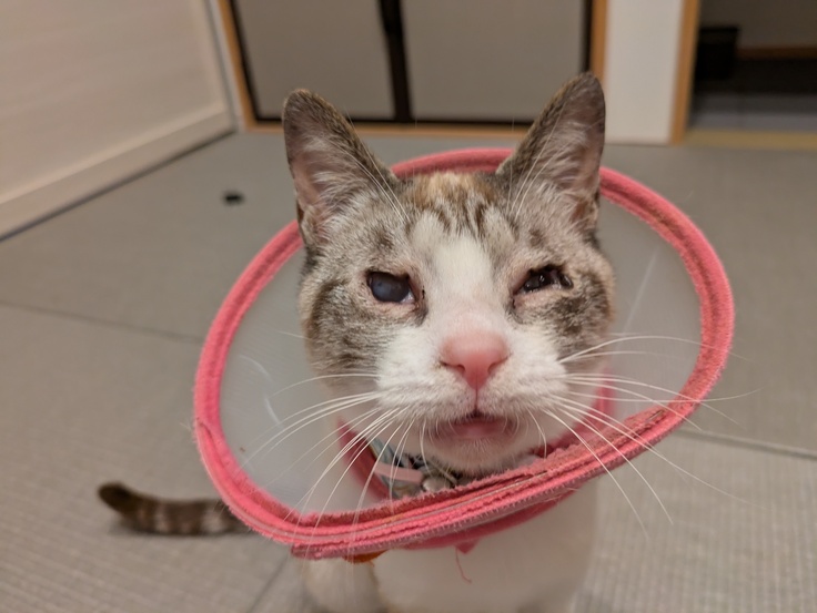 短期間で麻酔をかけて瞼眼癒着手術をするのは[あおいちゃん]の体力的にも金銭的にも厳しくなりますが先生と相談しながら今後の治療を進めていきます。