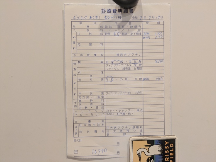脱水改善のため引き続き点滴は必要ですが腎臓薬ラプロスは9月の抜歯までやめてみることとなりました。