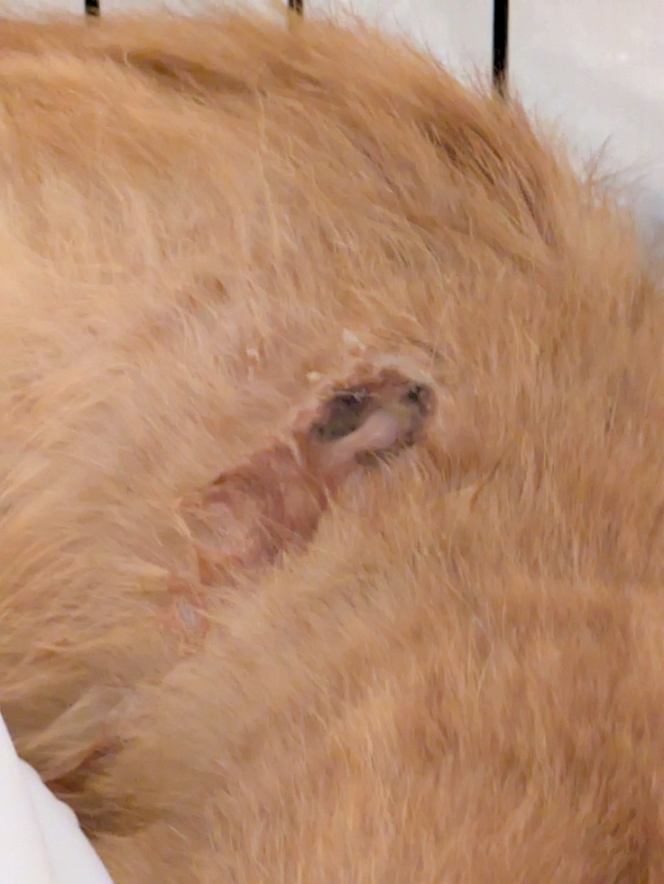 あとは膿傷ですがコンベニアを4日前にしていたので膿も排出できたので、縫合していただきました。