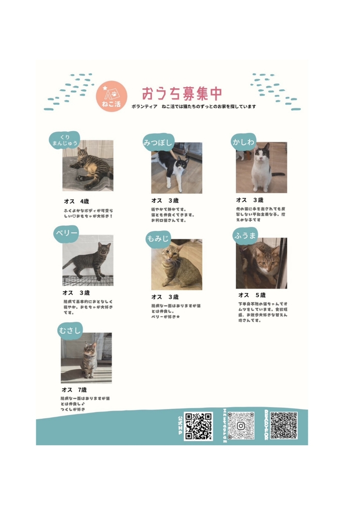 そして従来の仙台市開催のお見合い会「星空ねこお見合い会」とは違いワークショップや、チャリティーイベント等、また猫も参加にはなりませんし、平日開催が基本になりますのでお手伝いボランティアさんもおらず私1人にはなりますがそれもまたよしとして、ご来場いただいた方と深くコミュニケーションをとり活動の想いを伝える、また猫達の魅力を伝えるいい機会と思っています。