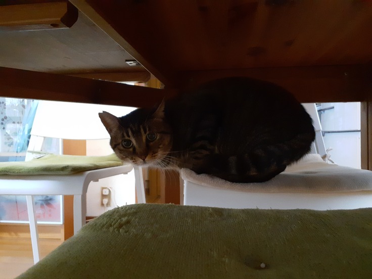 連れて帰らないよと言ったのですが微動だにせず私の顔をじーっと見て、ママさんと話をしている間にそろりとこたつの中へ逃げていきました。
