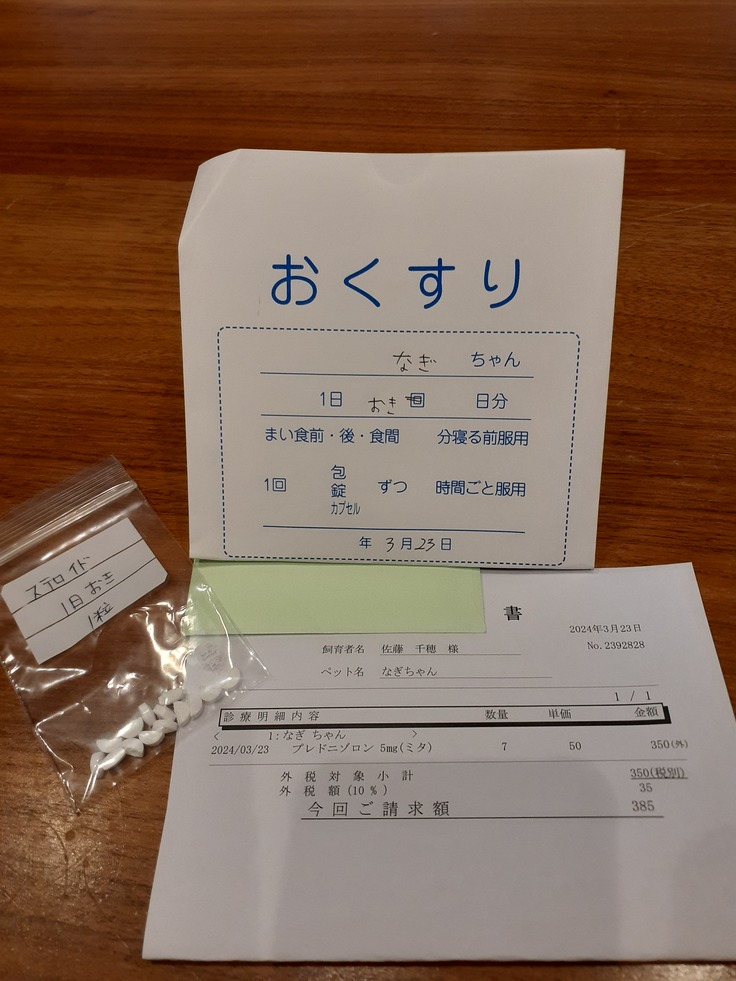 ただ水を飲む量が多くなってきましたので毎日4分の1ではなく、1日おきに2分の1の投薬に変更になりました。
