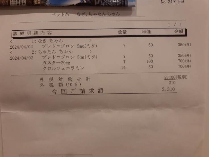 結果は肥満細胞腫ということで確定日からステロイドを開始、現在はプラスして胃薬と抗ヒスタミン剤を投薬中です。