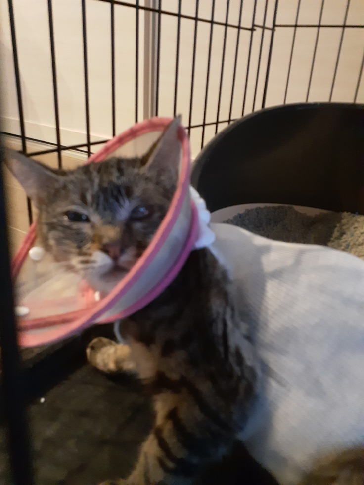 まずは先日、目の手術と避妊手術をした【こももちゃん】。