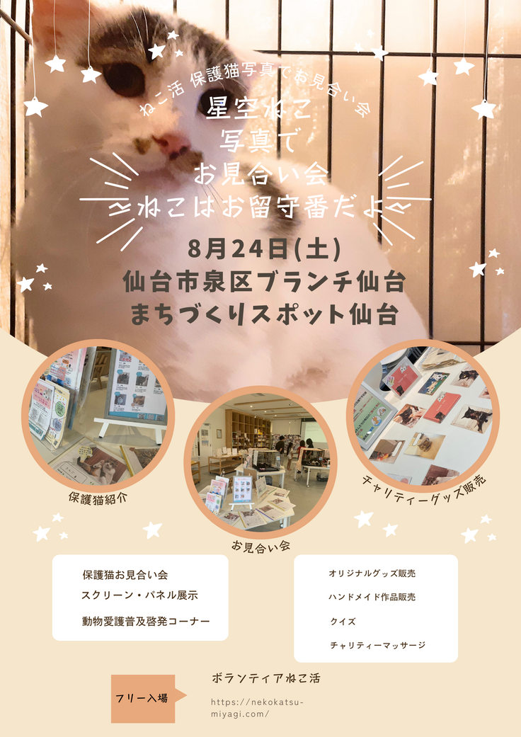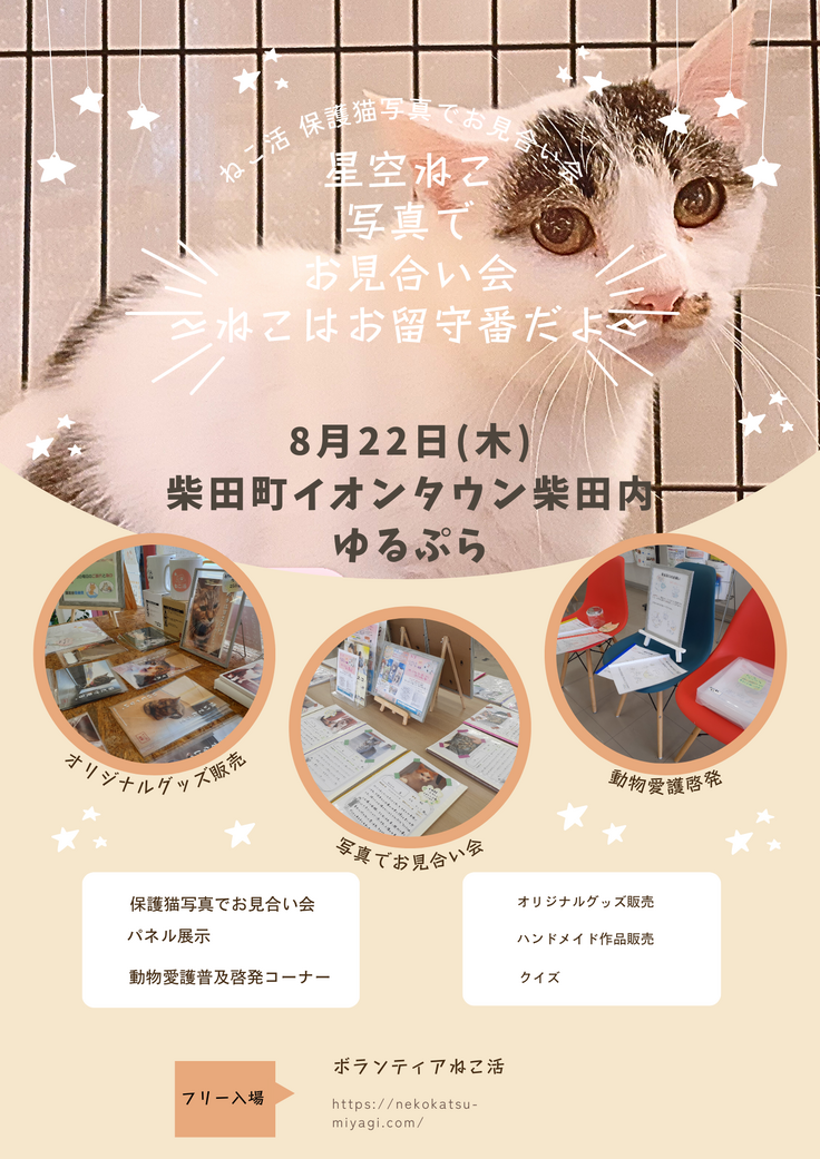 22日は柴田郡柴田町イオンタウン柴田内ゆるぷらにて☆ねこ活写真でお見合い会~ねこはお留守番だよ~☆を開催。